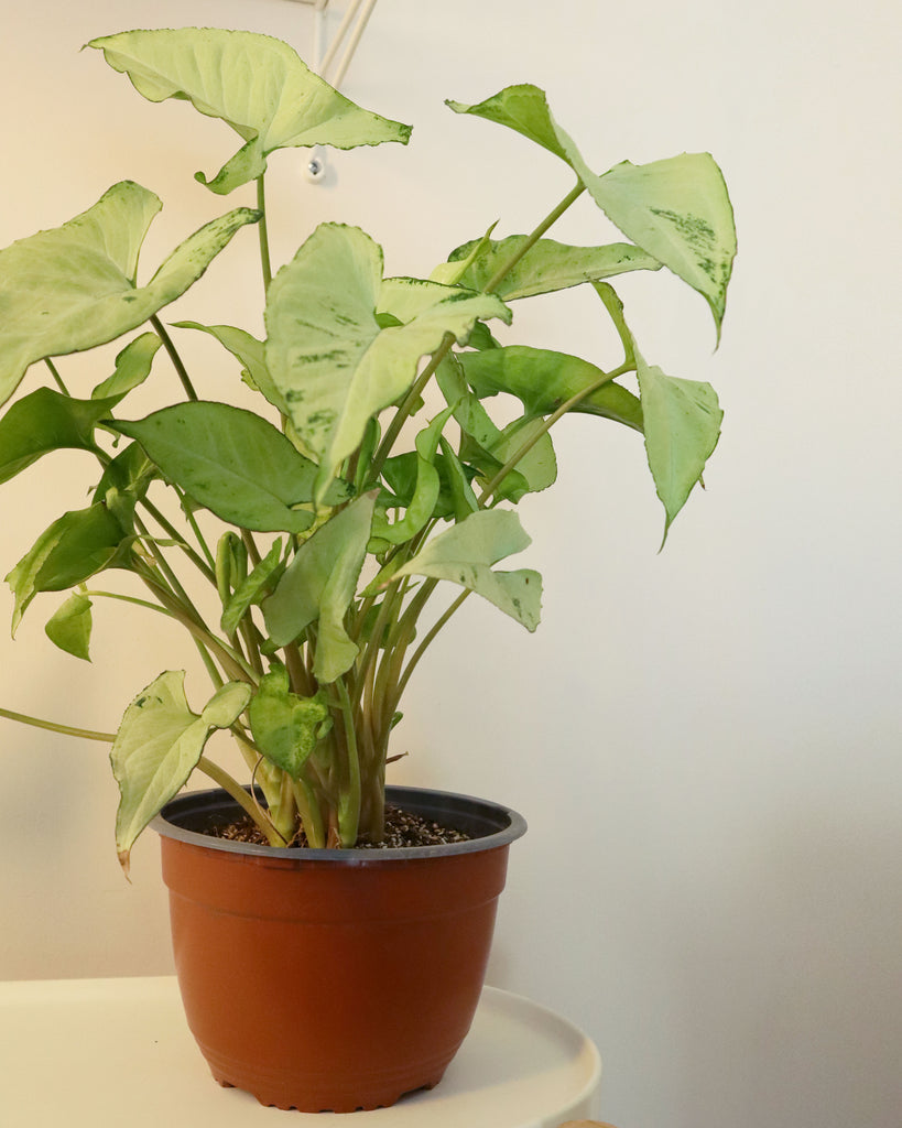 El Syngonium Holly y su elegante follaje agrega un toque de frescura y sofisticación a cualquier habitación, haciéndola perfecta para oficinas, salas de estar y espacios de trabajo.