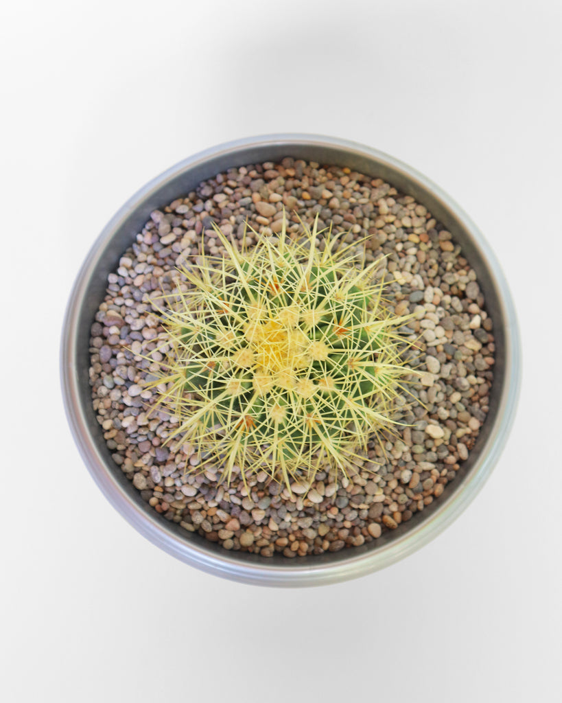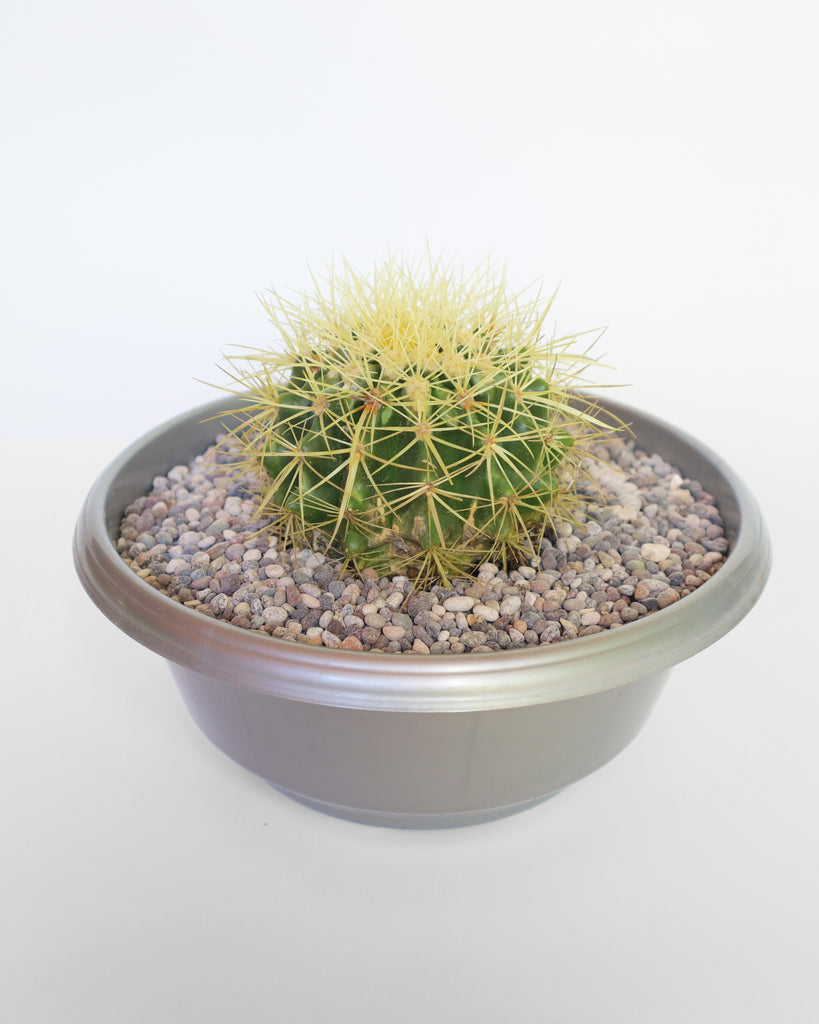 También conocido como cactus barril dorado, este cactus es famoso por su forma esférica y sus espinas doradas que crean un contraste llamativo. Resistente y de bajo mantenimiento, es ideal para interiores luminosos y jardines secos.